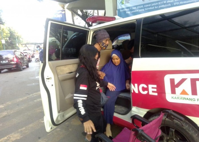 Senin (13/07/2020) Tim relawan Karawang Peduli manemui bu Ningsih dan membawanya kerumah sakit untuk pengecekan bekas jahitannya dikepala menggunakan ambulan Karawang Peduli yang merupakan kendaraan untuk mengantar pasien yang memerlukan bantuan.