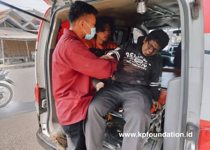 TIM DSMR Karawang Peduli melarikan korban menggunakan Ambulance ke Rs. Lira Medika. Kronologis kecelakaan diduga pengendara motor tanggung oleh pengendara motor di depan nya sehingga menyebabkan pengendara rem mendadak dan terjatuh.