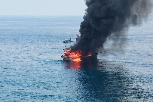Terbakarnya KM United di Perairan Pulau Berhala Su...