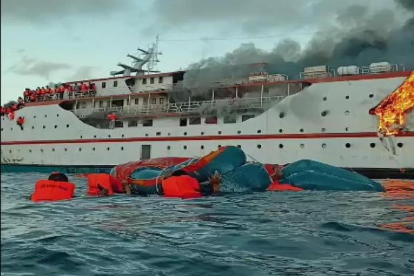 Kapal KM Karya Indah Terbakar di Tengah Lautan Mal...