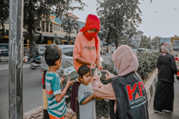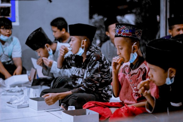 Relawan Membagikan Sahur untuk Yatim di Rengasdeng...